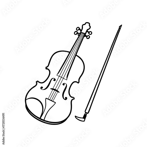 Fototapeta premium Simple violin and bow drawing line art