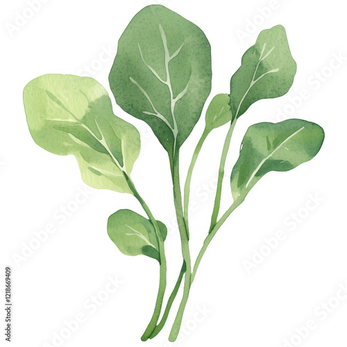 © Stellar, Fototapeta premium simple watercolor illustration of A Beet Greens, on the edge of it, against a white background.