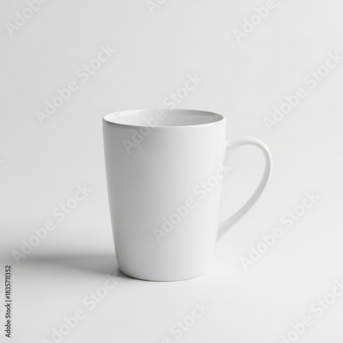 Obraz premium Simple white ceramic coffee mug standing on plain background