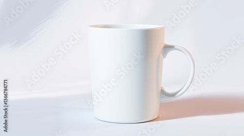 © Jarvis, Obraz premium Simple white ceramic mug stands on a white surface