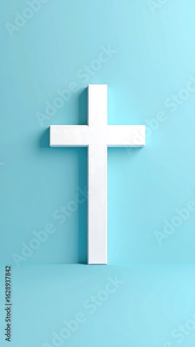 Obraz premium Simple white cross against a light blue background