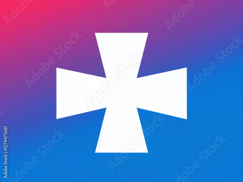 Obraz premium Simple white cross on a vibrant gradient background with blue and red tones,...