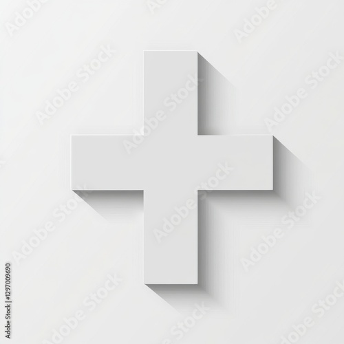 Obraz premium Simple white cross symbol with a modern design, casting a soft shadow on a light background.