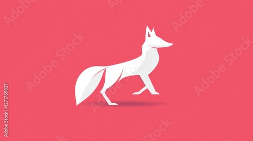 Obraz premium Simple white fox graphic design on pink background