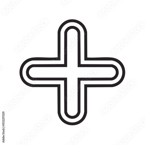 Obraz premium Simple White Plus Sign Graphic on Black Background for Addition Mathematics...