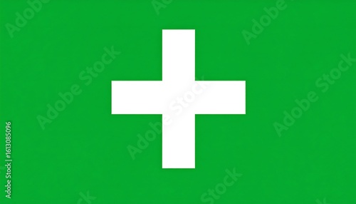 Fototapeta premium Simple white plus sign on solid green background