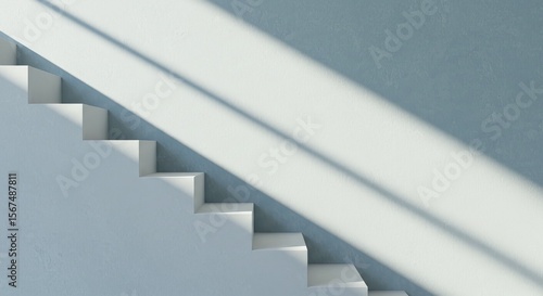 Obraz premium Simple White Steps with Dramatic Sunlight on Minimalist Blue Wall