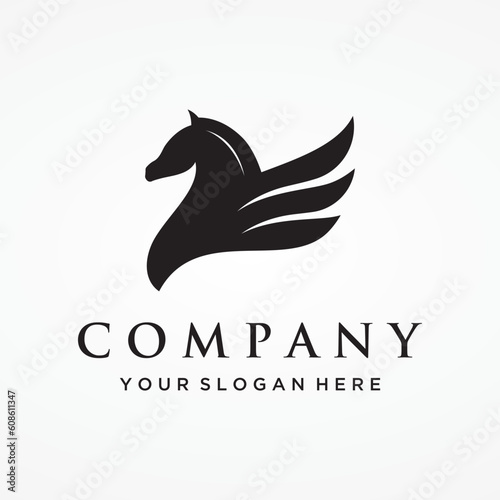 Fototapeta premium Simple winged horse or pegasus Logo template design with creative idea.