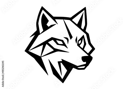 © Ano, Obraz premium Simple wolf's head in simple lines. Laser template.KI Generated