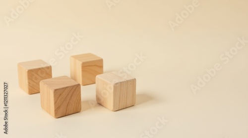 © vattana, Obraz premium Simple wooden blocks arranged on a pale background showcasing minimalist design