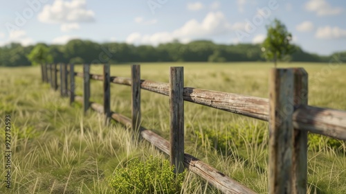 Fototapeta premium Simple wooden fence in an empty meadow
