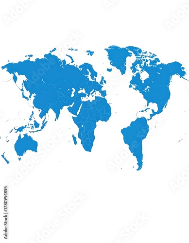 © amanda, Obraz premium Simple world map, filled blue, outlined in white