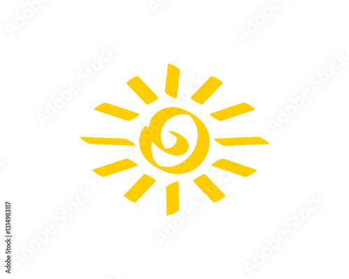 Fototapeta premium Simple yellow sun icon with big center and bright rays, showing warmth and energy in design.