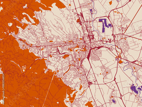 Obraz premium Simplified city layout of Miskolc, Hungary