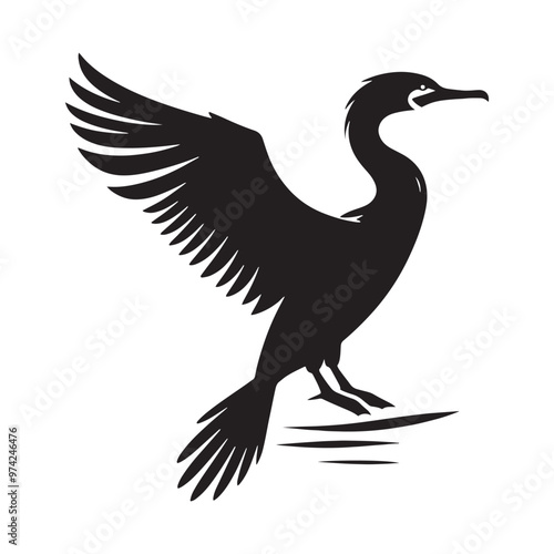 Fototapeta premium Simplified cormorant silhouette for versatile print and digital uses -...
