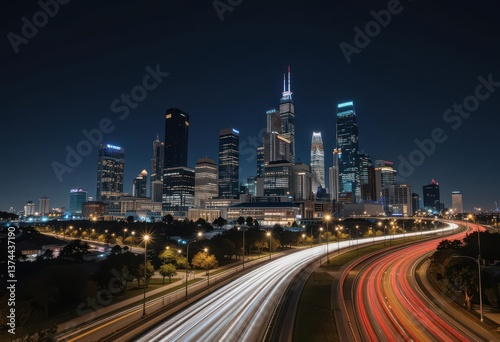 © anulak, Fototapeta premium Simplified Houston Clean Lines in the City at Night