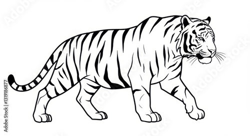 Naklejka premium Simplified Line Drawing of a Tiger