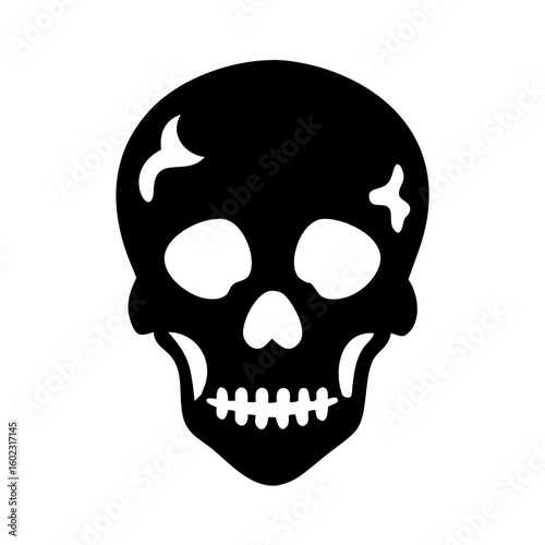 Fototapeta premium Simplified skull image in black, cartoon drawing, skull illustration on white icon vector