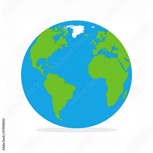 © Rizky, Naklejka premium Simplified world map illustration, continents, green landmasses, blue oceans, global representation.