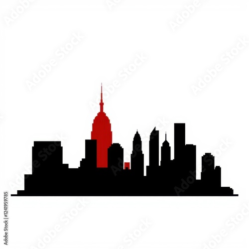© Pixel Sage, Naklejka premium Simplistic city silhouette in a minimalistic artistic interpretation silhouetted skyline cityscape architecture illustration building city vector