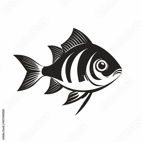 © Christopher, Fototapeta premium Simplistic elegant fish illustration against white backdrop, artistic ocean creature silhouette
