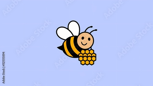 Obraz premium Simplistic Illustration of a Round Bee Holding a Honeycomb with a Light Blue...