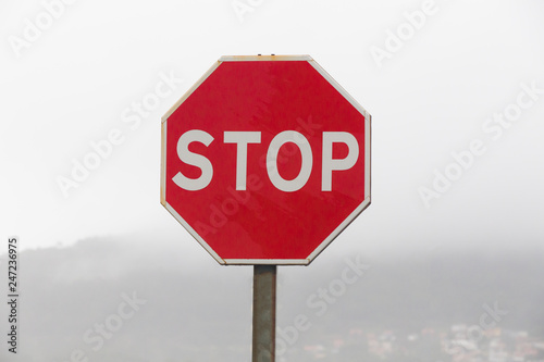 Obraz premium Sinal de transito STOP num fundo cinzento.