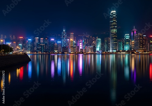 © Fatema Munny, Naklejka premium Singapore and Dubai city skylines at night with illuminated skyscrapers and water reflections