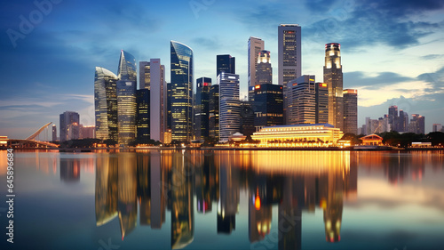 © LomaPari2021, Naklejka premium Singapore city skyline at dusk generative ai