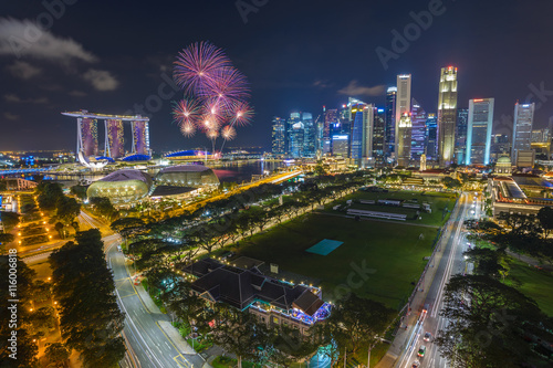© Noppasinw, Obraz premium Singapore national day fireworks celebration