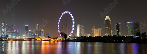 © Alxy, Fototapeta premium Singapore panorama at night with wheel