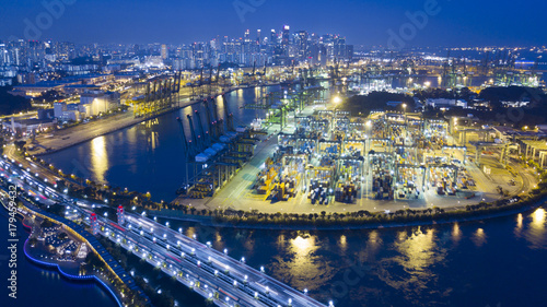 Fototapeta premium Singapore Port with Singapore City background