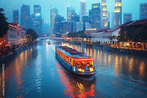 © Md, Obraz premium Singapore river cruise night cityscape skyline