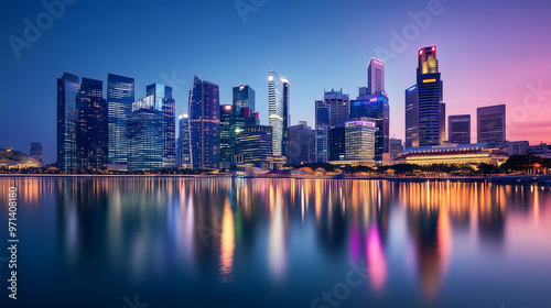 © lasalus, Fototapeta premium Singapore Skyline: A Nighttime Gem