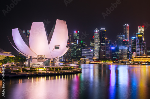 Obraz premium Singapore skyline and Marina bay view at night