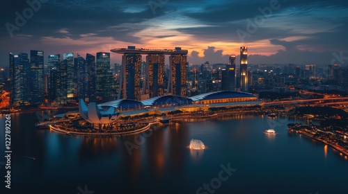 © paryati, Fototapeta premium Singapore Skyline at Dusk: Marina Bay Sands and Cityscape
