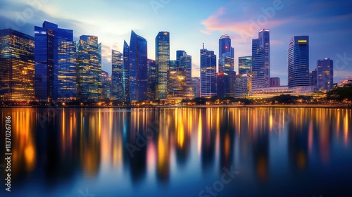 Fototapeta premium Singapore Skyline at Twilight: A Captivating Reflection