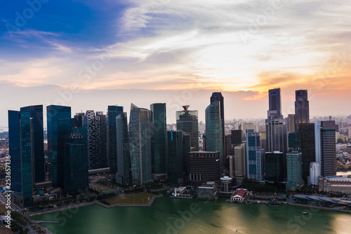 Fototapeta premium Singapore skyline city building snset sky cloud with Marina bay