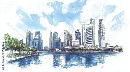 © Rauf, Fototapeta premium Singapore. Unusual perspective hand drawn sketch. City vector illustration