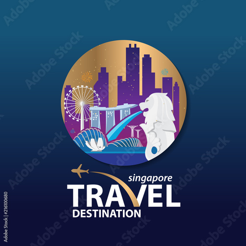 © kowition, Fototapeta premium Singapur podróży zabytki. Grafika wektorowa i ilustracje.