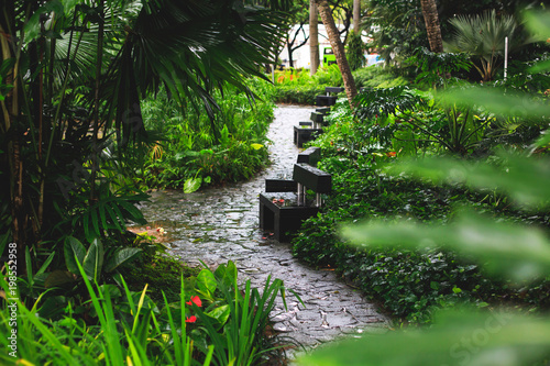 © tsuguliev, Fototapeta premium Singapurska ulica z zielenią i roślinami