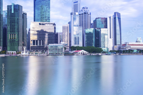 © Thanakorn Thaneevej, Naklejka premium Singapurski wieżowiec z nowoczesnym budynkiem wokół zatoki Marina