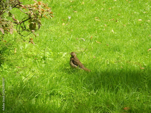 © natalyapril, Fototapeta premium Singdrossel im Gras