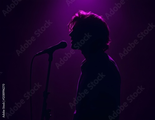 Naklejka premium Singer Silhouette Purple Stage Lighting Music Concert