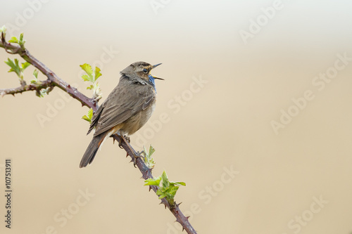 © Menno Schaefer, Obraz premium Singing Bluethroat on the stalk