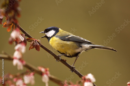 Naklejka premium Singing Great Tit in Cherry Tree