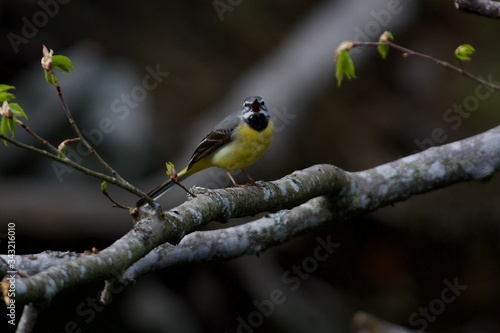 © Tommy, Naklejka premium Singing grey wagtail on a branch