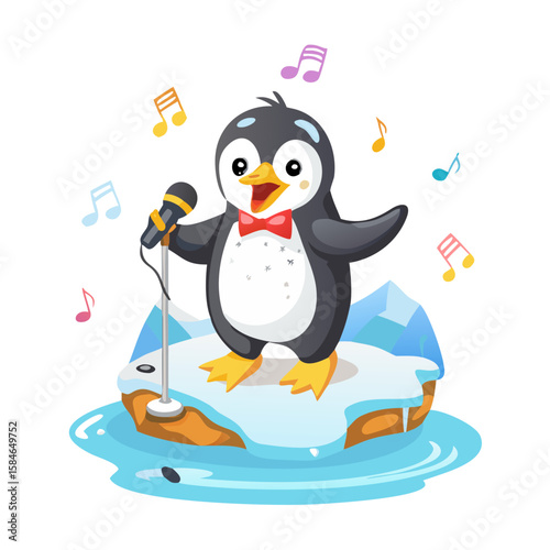 © DwiAmelia, Naklejka premium Singing Penguin on Iceberg Vector Illustration