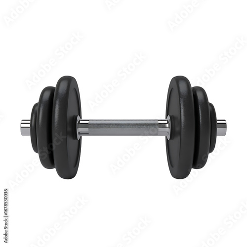 © Alok, Naklejka premium Single adjustable dumbbell with black weights on a black background