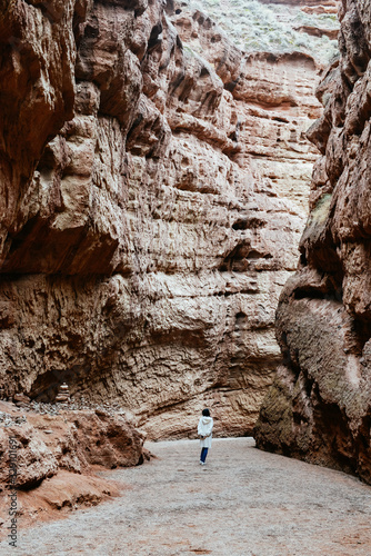 © sweetriver, Obraz premium Single Asian girl walks in valley